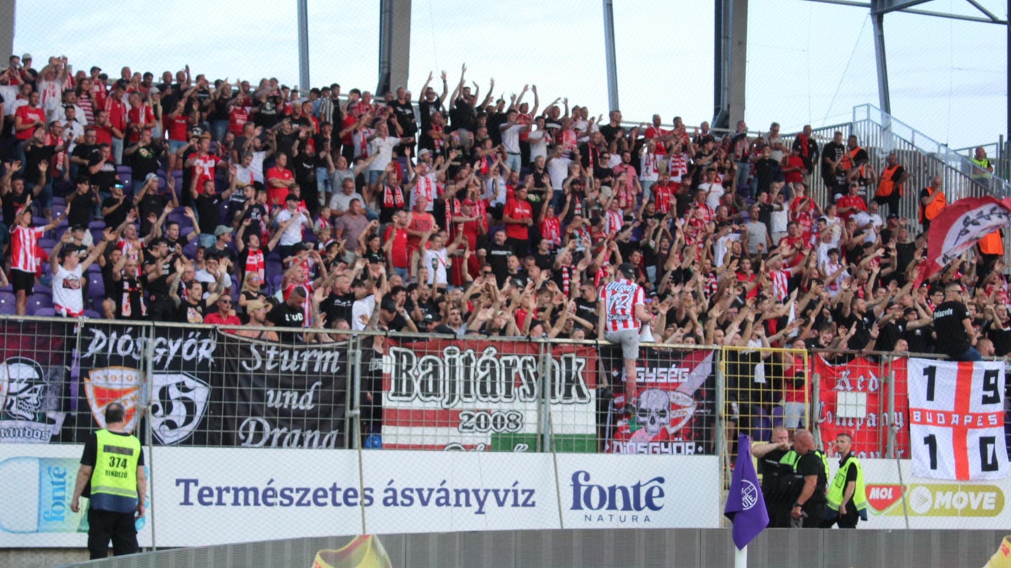 ,,A FEB az Újpest–Diósgyőr mérkőzéssel kapcsolatban a Diósgyőrt szurkolóinak rendzavarásaiért (megbotránkoztató, obszcén kifejezések bekiabálása, pirotechnikai eszközök használata és rasszista megnyilvánulás: „cigányozás”) pénzbüntetés megfizetésére kötelezi, továbbá 1 soron következő hazai NB I-es férfi felnőtt nagypályás bajnoki mérkőzésre szóló szektorbezárással bünteti. A FEB a szektorbezárás büntetés végrehajtását 6 hónapra felfüggesztette.