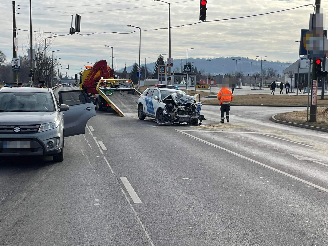 Az üldözésbe egy másik, szintén megkülönböztető fényjelzést használó rendőrautó is bekapcsolódott, és a kétirányú, irányonként két-két forgalmi sávos úton szemből közelítve jelezte, hogy meg akarja állítani az autót, ezért kissé áttért annak forgalmi sávjába. Amikor a rendőr látta, hogy az érkező autó nem lassít, visszatért a sávjába és fékezni kezdett. A gyanúsított a gépkocsiját szándékosan balra, az ekkor már a saját belső forgalmi sávjában közlekedő rendőrautó irányába kormányozta, átlépte a záróvonalat és frontálisan nekiütközött.