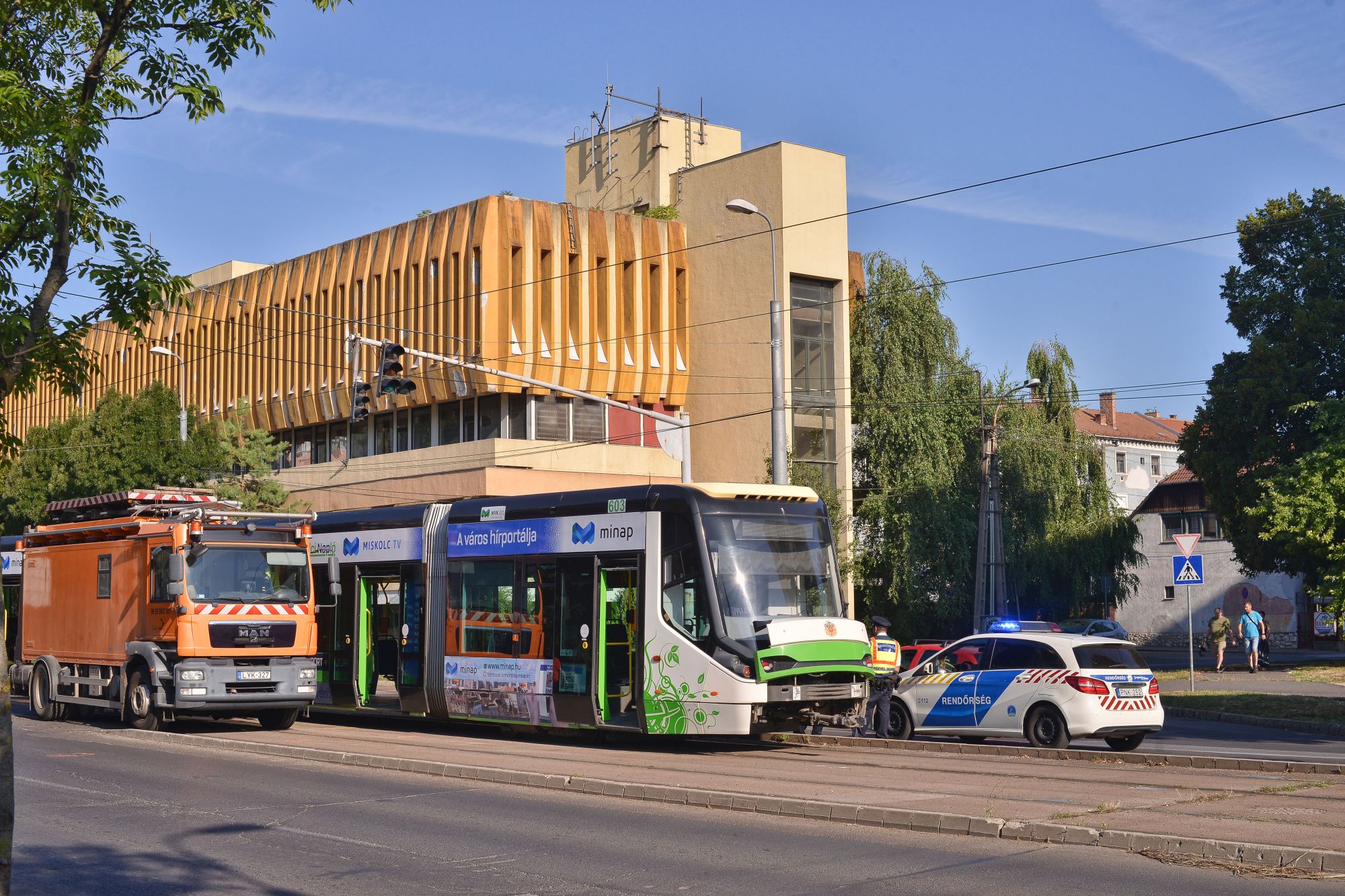 - Ami biztos, hogy a személyautó megállás nélkül haladt be az útkereszteződésbe. Ott van a stop tábla, aminek a járművezető nem tett eleget. Ahhoz, hogy a villamos, ami viszonylag nagy tömeggel rendelkezik, lesodródjon a sínről, nagyon nagy erőhatás kell. Tehát ebből következik, hogy – nem azt mondom, hogy a sebességet túllépve, de egész biztosan fékezés nélkül haladt be az útkereszteződésbe a gépjármű – nyilatkozta a Molnár Emil, a Miskolci Rendőrkapitányság Közlekedésrendészeti Osztályának vezetője televíziós stábunknak.