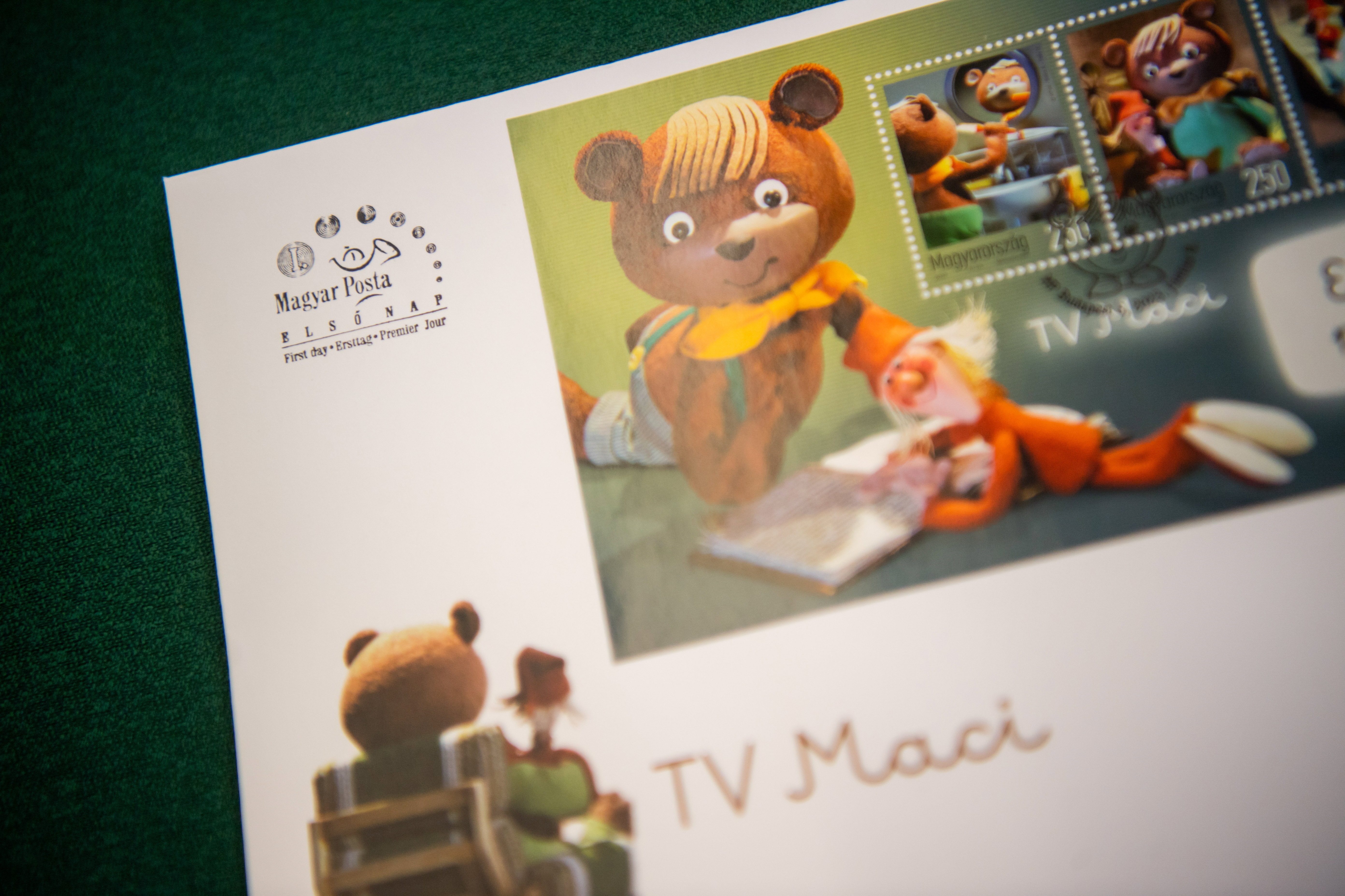 A bélyegblokkon Bálint Ágnes író és Foky Ottó bábtervező alkotásaként készült Esti mese szignálfilm főszereplője, a TV Maci látható. Az alkalmi bélyegblokk három címletén, a blokk keretén, valamint az alkalmi borítékon TV Maci és Paprika Jancsi figurája egy-egy jellegzetes életképpel szerepel - mondta, hozzáfűzve, hogy az elsőnapi bélyegzésű alkalmi borítékon található bélyegző lenyomatának fő eleme a TV Maci stilizált portréja.
