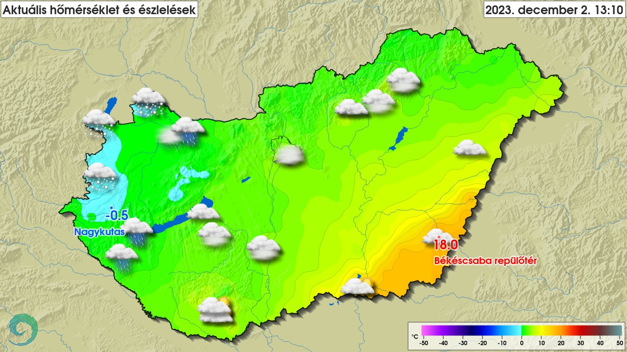A meteorológiai szolgálat bejegyzésében azt is írta, miközben délkeleten tavasz van, az ország nagyobb részén téli idő jellemző. Az infografika szerint a leghidegebbet a Zala vármegyei Nagykutason mérték, itt mínusz 0,5 fok volt a csúcshőmérséklet.