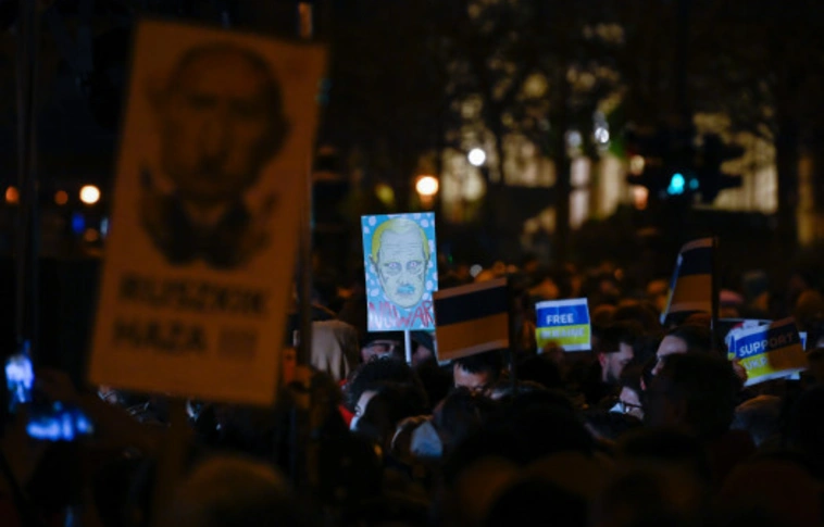 Ezrek tüntettek Putyin ellen, Ukrajna mellett a budapesti orosz követség előtt
