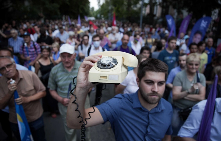 Megtartották az első tüntetést a Pegasus-botrány miatt hétfőn Budapesten.