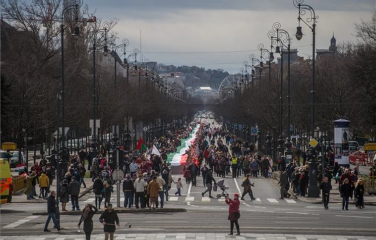 1848 méter hosszú zászlót vittek az Andrássy úton