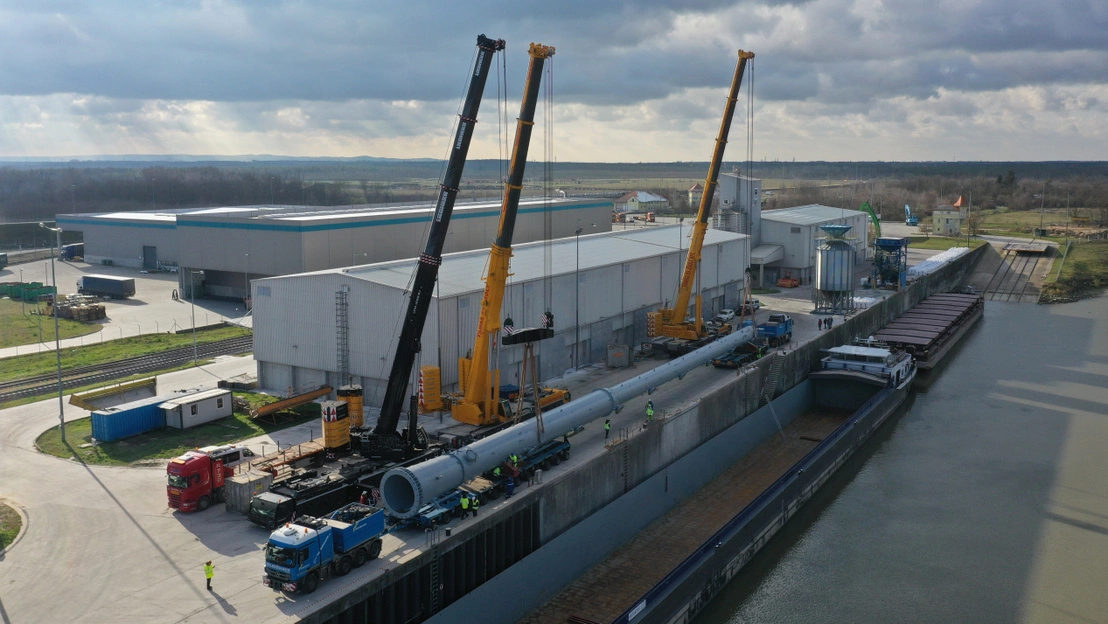 -Ugyanakkor nemcsak a vegyipari torony rendelkezik hihetetlen adatokkal: a rakodáshoz összeépített daru összsúlya 1000 tonna, ebből 655 tonna az ellensúly. A főgém hossza 49 méter, a névleges teherbírása, vagyis emelési súlya 750 tonna. A daru felállítása és leszerelése 1-1 hetet vesz igénybe, összesen 40 db trélerrel és kamionnal szállítják – írják.