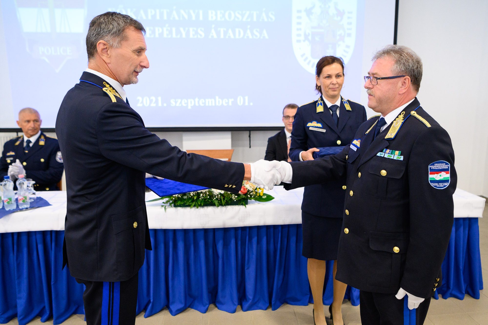Az állománygyűlésen dr. Mecser Tamás Sándor rendőr ezredes a Borsod-Abaúj-Zemplén Megyei Rendőr-főkapitányság csapatzászlóját átadta dr. Kiss Attila rendőr vezérőrnagynak.