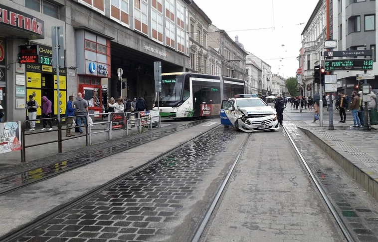 Kisiklott egy villamos a Centrumnál, miután rendőrautóval ütközött