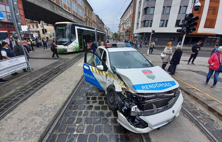 Hétfőn kora délután rendőrautó és villamos ütközött össze Miskolc belvárosában.