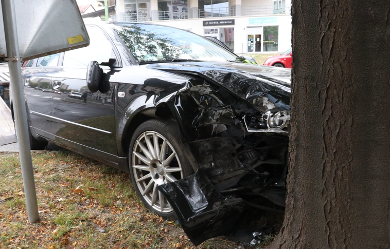 Busszal ütközött, majd fának csapódott az audis Miskolcon