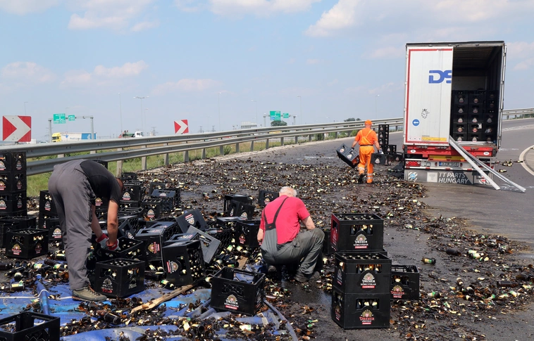 Sörösrekeszek borultak az M30-asra Miskolcnál
