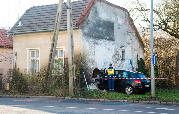 Ritka közlekedési baleset, házfalnak ütközött egy autó Miskolcon