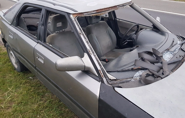 Szélvédő és rendszám nélküli autó járt az autópályán, de kifogyott a benzin belőle