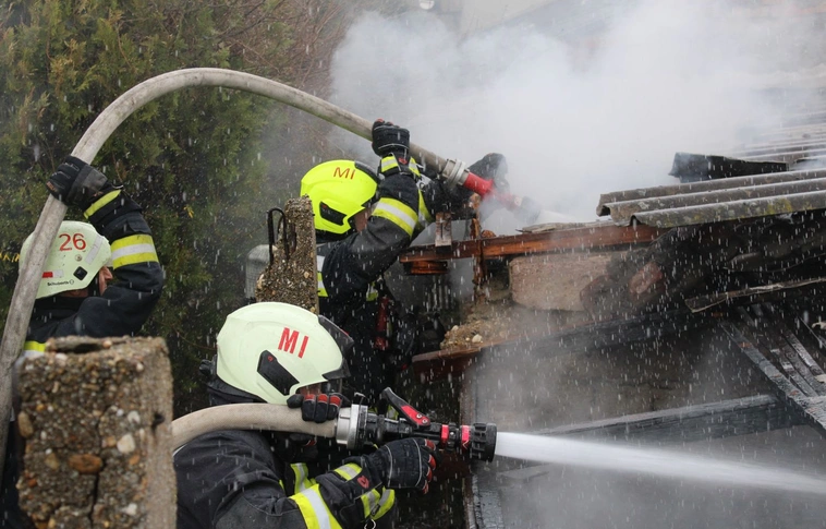 A tűzoltók egy vízsugárral fékezték meg az elhagyott épület tüzét.