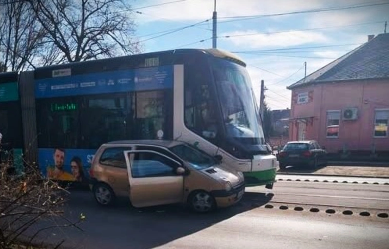 Péntek délelőtt személyautó karambolozott a villamossal a Győri kapu városrészben.