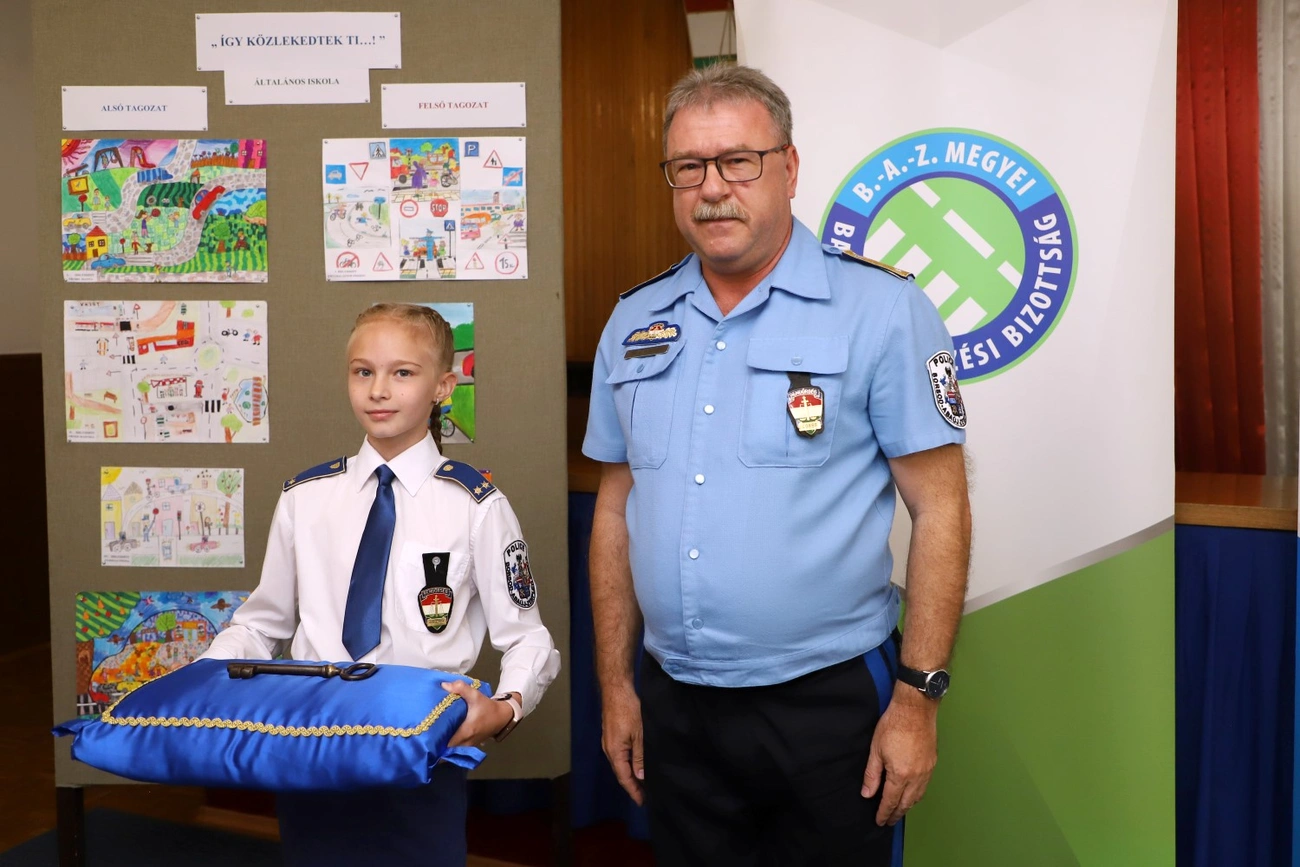 A korábban meghirdetett bűn- és balesetmegelőzési rajzpályázat óvodás és iskolás győzteseit is díjazták. Ám előtte még gondoskodó parancsnokból is született egy újabb: Bukó Lora, a gyermeknapi főkapitány az intézmény feletti teljhatalmat szimbolizáló kapitánysági kulcsot Kiss Attilától vehette át.