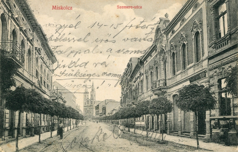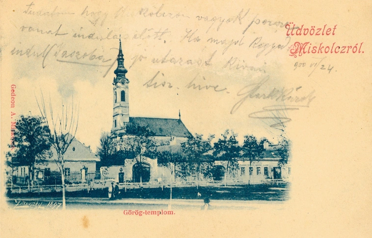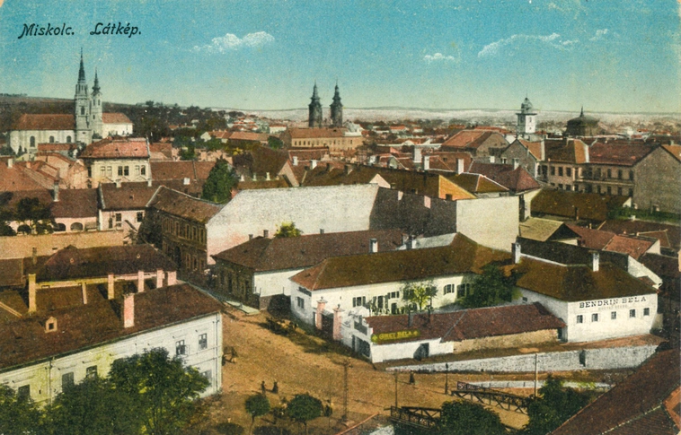 Miskolc. Látkép – áll a száz évnél minden valószínűség szerint már idősebb régi miskolci képeslapon.