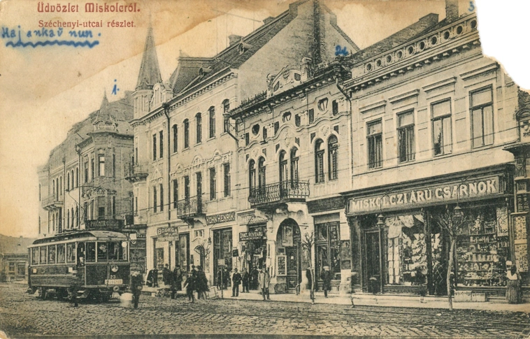 „Széchényi utczai részlet” – áll a körülbelül százéves képeslapon, ami a Villanyrendőr és a Déryné utca közötti épületeket mutatja.