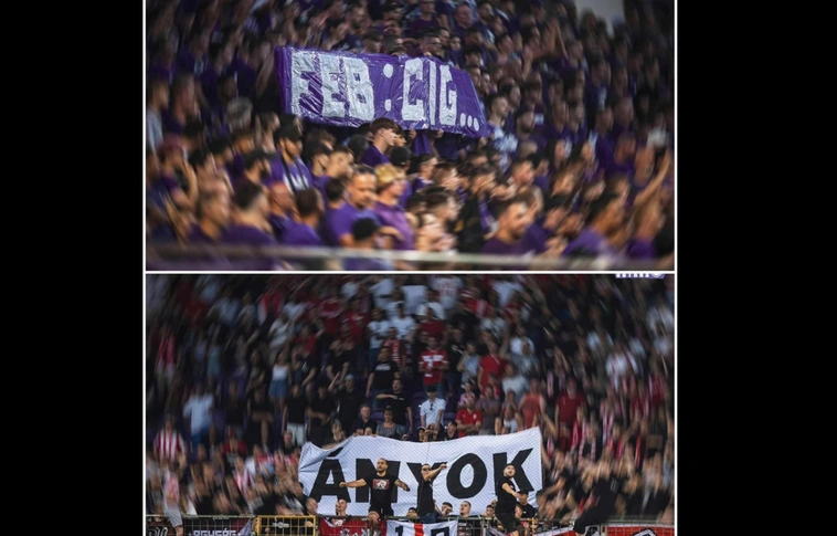 Összefogtak a DVTK és az Újpest szurkolói a pénteki meccsen. A közös kiállás egy-egy molinón jelent meg a hazai és a vendég oldalon.