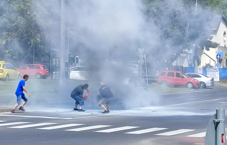Szombaton a késő délelőtti órákban gyulladt ki egy személygépjármű motortere a Győri kapu - Thököly út kereszteződésében a lámpánál.