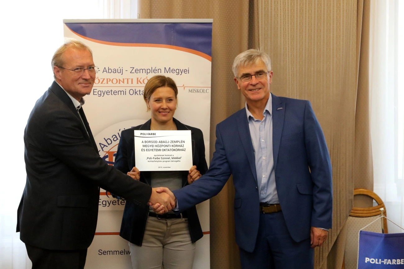 A pályázat célja, hogy szebbé, élhetőbbé, lakhatóbbá tegyék azokat a problémákkal és nehézségekkel tűzdelt alkalmakat, amikor valaki rászorul egy egészségügyi intézmény szolgáltatásaira – fogalmazott Szabó Antal, a Poli-Farbe ügyvezetője. – Nem mindegy számunkra az sem, hogy azokat a falfestékeket, amelyek Magyarország piacvezető gyárának a gyártósorairól kerülnek le, milyen célokra használják fel – mondta. Hozzátette: van egy olyan termékük, ami kifejezetten műtők festésére alkalmas, mert olyan higiéniai és egészségügyi körülményeket képes biztosítani, ami a legmagasabb igényeket is képes kielégíteni.
