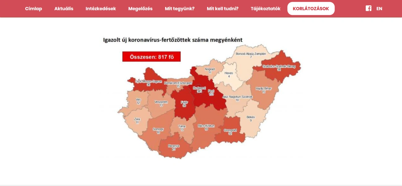 Az oldal térképe alapján továbbra is Budapesten (345 ember) és Pest megyében (153) van a legtöbb fertőzött.