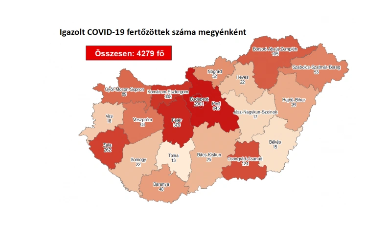 16 újabb magyar állampolgárnál mutatták ki az új koronavírus-fertőzést (COVID-19), ezzel 4279 főre nőtt a hazánkban beazonosított fertőzöttek száma, Borsod-Abaúj-Zemplénben 5 beteget találtak, így a térségben a járvány kezdete óta 105 beazonosított fertőzöttet tartanak nyilván. A koronavirus.gov.hu kormányzati portál azt írja, újabb elhunyt nincsen, az elhunytak száma változatlanul 595 fő, 3156-an pedig már meggyógyultak. Az aktív fertőzöttek száma 528 fő. Az aktív fertőzöttek 38 százaléka, az elhunytak 60 százaléka, a gyógyultak 45 százaléka budapesti. 109 koronavírusos beteget ápolnak kórházban, közülük 5-en vannak lélegeztetőgépen.