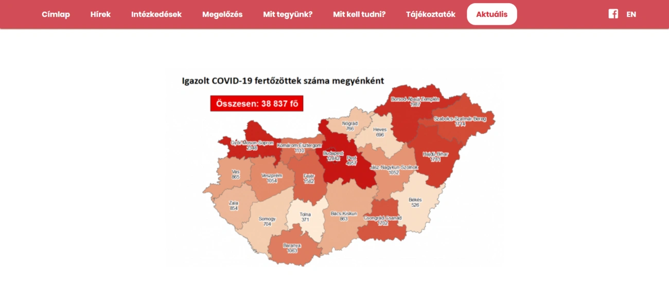 A kormányzati portálon azt írták: 38 837-re nőtt a Magyarországon azonosított fertőzöttek száma. Az elhunytak száma 968-ra emelkedett, 11 037-en már meggyógyultak.