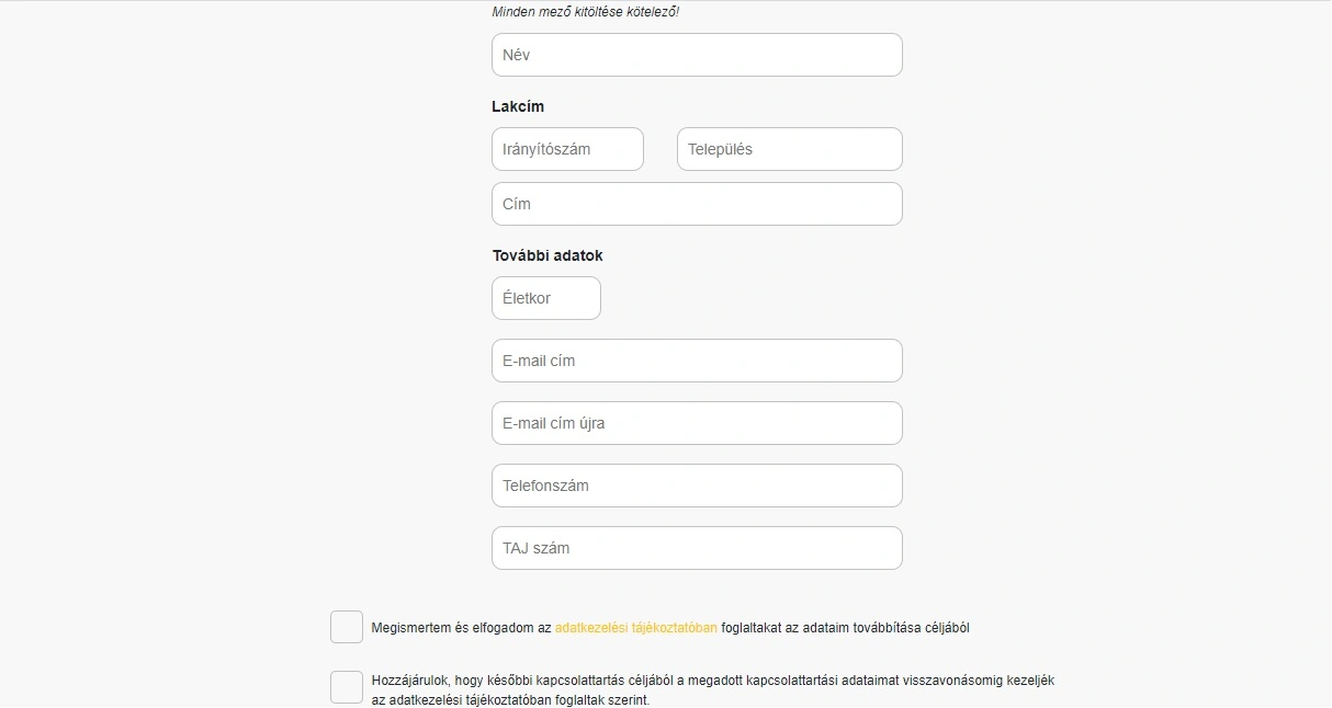 a nevünket, lakcímünket, életkorunkat, e-mail címünket és telefonszámunkat, valamint a TAJ számunkat is,