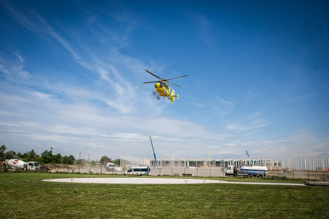 A legjelentősebb változás, hogy felépítettek egy fűthető hangárt, ami azért fontos - hangsúlyozta Gebei Róbert orvosigazgató -, mert télen is sokkal gyorsabban el lehet indítani a mentőhelikoptert. És épült parkolóhely mentőautónak is, hogy ha az időjárás nem teszi lehetővé a felszállást, vagy valamilyen műszaki probléma adódna a helikopterrel, akkor is azonnal reagálni tudjanak a riasztásra.