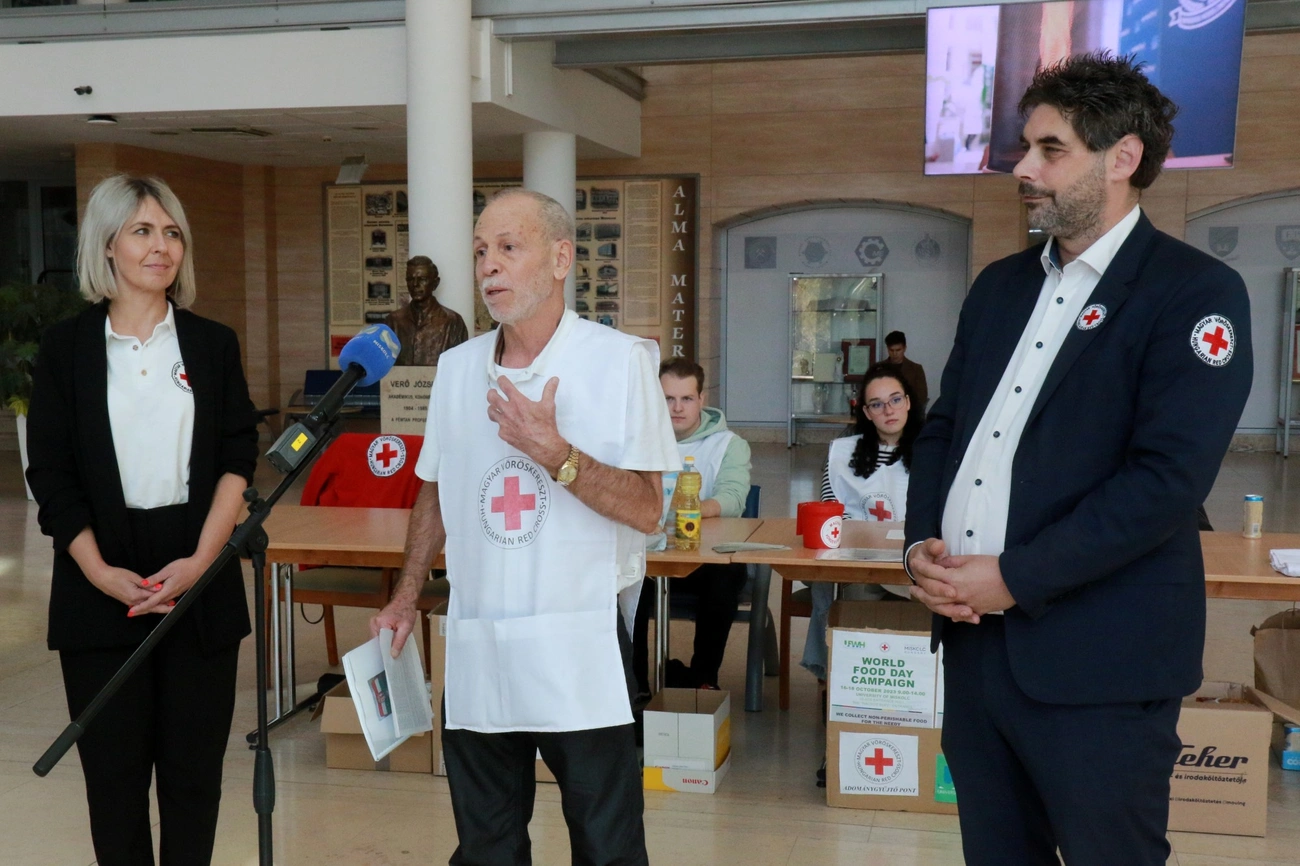 „Több mint egy évtizede hagyomány már, hogy a Miskolci Egyetem a Vöröskereszttel együtt csatlakozik az ’Egyetemek harca az éhezés ellen’ elnevezésű világméretű akcióhoz. Ez abban is különleges, hogy a magyarországi egyetemek közül a Miskolci Egyetem az egyedüli, amely csatlakozott ehhez”- avatott be Grubert Roland a Vöröskereszt Borsod-Abaúj-Zemplén vármegyei igazgatója. Hozzátette, évente kétszer, tavasszal és ősszel is megszervezik a gyűjtést. Ezek rendre jól sikerülnek, alkalmanként többszáz kiló tartós élelmiszer szokott összegyűlni. De legalább ilyen fontos az a társadalmi, edukációs cél, hogy az egyetemisták találkozzanak ezzel a szociális programmal.