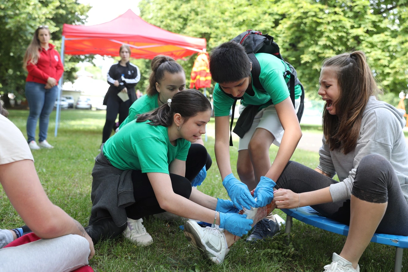 A kárhelyek kialakítása, a feladatok kitalálása, az imitátorok eligazítása volt a fő feladata – mondta Harczos Adrienn, a Magyar Ifjúsági Vöröskereszt elnöke. Minden évben tematikája van a versenynek. Idén a nyári szabadidős tevékenységek kerültek a fókuszba. Ilyen a kerti parti, grillezés, trambulinozás, medencézés, ahol sérülés keletkezhet.