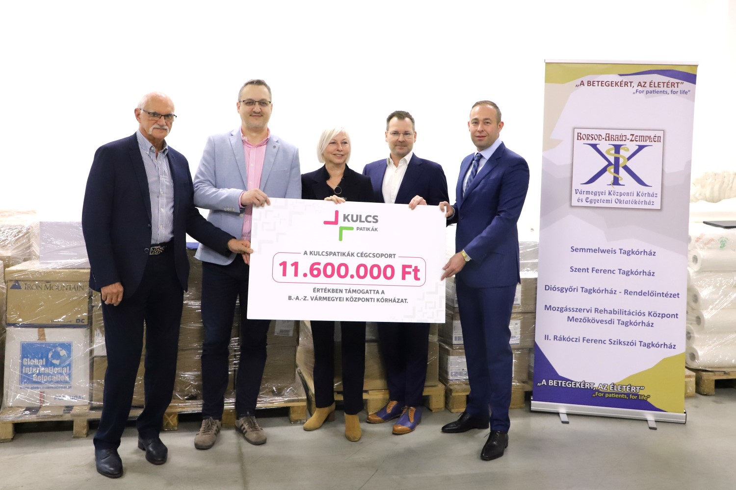 Újabb felajánlásban részesült a Borsod-Abaúj-Zemplén Vármegyei Központi Kórház és Egyetemi Oktatókórház, ezúttal a Kulcspatikák cégcsoport adott át – beszerzési értéken – csaknem 12 millió forint értékű adományt az egészségügyi intézménynek kedden.