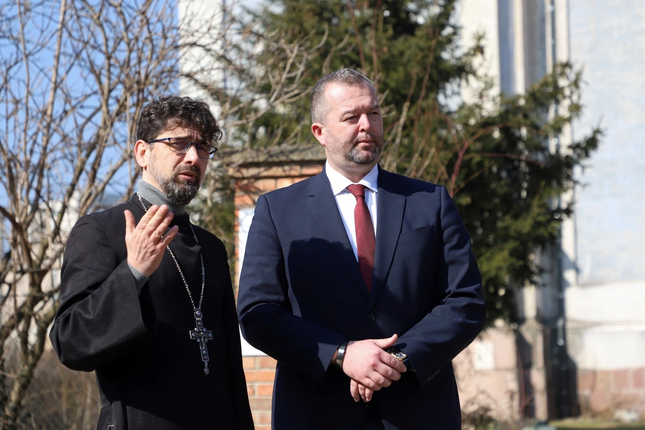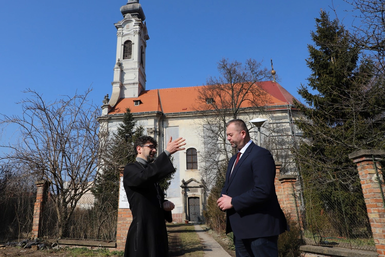 - Történelmi pillanatnak lehettünk fültanúi mi és a Miskolc szerte itt élők, hiszen megszólalt újra a déli harangszó a belvárosi ortodox templom tornyában. A 400-450 milliós kormányzati támogatásnak köszönhetően a templom felújítási munkálatainak a következő állomásához érkeztünk. A teljes tetőszerkezet várhatóan őszre készülhet el. Akkor tudjuk majd visszaadni a híveknek és mindenkinek, aki érdeklődik a különleges templom iránt. Emellett a szentély parkjának megújítására is szeretnénk támogatást adni – mondta Hollósy András, Miskolc alpolgármestere.