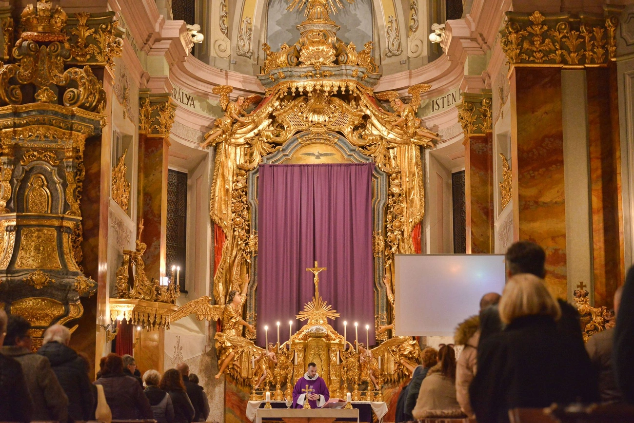 Elmondta, hogy a nagyböjt első liturgikus eseménye, hogy hamvazószerdán a pap hamuval keresztet rajzol a hívek homlokára, amit hamvaszkodásnak neveznek. Ez arra utal, hogy porból lettünk és egyszer véget ér az életünk. A bűnbánat színe a lila, ami a templomi oltárterítőn és a pap ruhájában is megjelenik nagyböjtben. A főoltár festményét és a kereszteket pedig letakarják lila lepellel, hogy segítsék a hívek befelé fordulását, és ezt csak nagypénteken leplezik le.