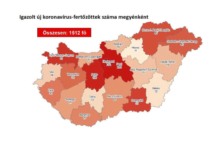 Meghalt 13 beteg, és egy nap alatt 54-gyel, 1512-re nőtt az azonosított koronavírus-fertőzöttek száma Magyarországon - írta a koronavirus.gov.hu kedd reggel.