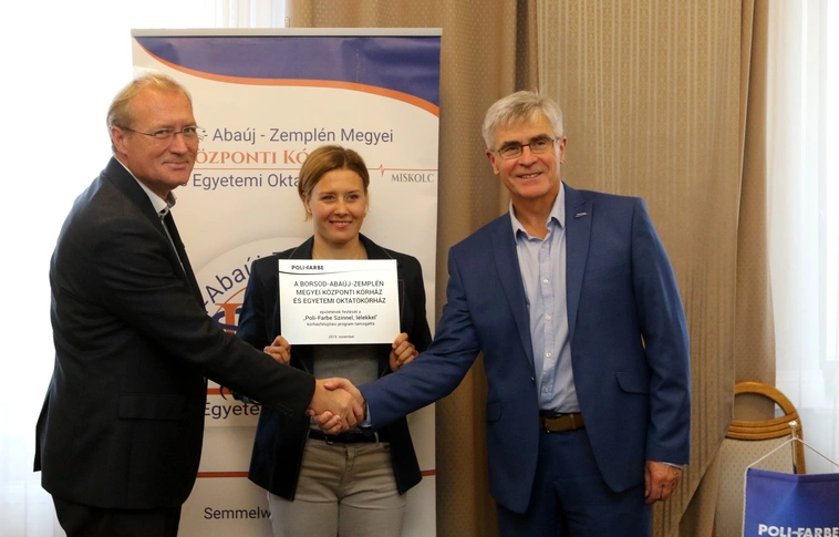 A bócsai Poli-Farbe Vegyipari Kft. idén tavasszal meghirdetett „Poli-Farbe Színnel, lélekkel” kórház-felújítási pályázatának köszönhetően a megyei kórház és tagintézményei 17 ezer négyzetméter falfelület felújítására elegendő festékmennyiséget, valamint nettó 440 ezer forint anyagi támogatást nyert, amelyből egy érintőképernyős betegőrző monitort vásároltak.