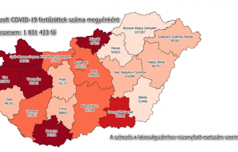 Magyarországon a beoltottak száma 6 398 091, közülük 6 177 402-en a második, 3 824 405-en a harmadik, míg 229 151-en már a negyedik oltást is megkapták. 2377 új fertőzöttet igazoltak, ezzel a járvány kezdete óta 1 812 294-re nőtt az azonosított fertőzöttek száma. Meghalt 54, többségében idős, krónikus beteg, így az elhunytak száma 44 603-ra emelkedett - közölte a koronavirus.gov.hu csütörtökön.