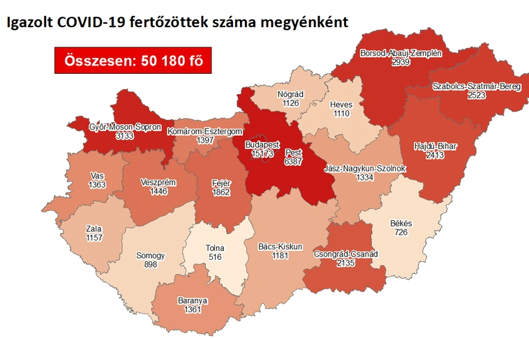 Több mint 1400 újabb magyarnál mutatták ki az új koronavírus-fertőzést, ezzel 50 ezer fölé nőtt Magyarországon a beazonosított fertőzöttek száma.