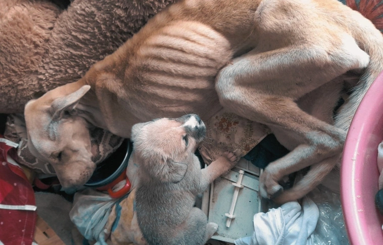 Nevet és chipet is kapott gazdáitól, majd végignézték, ahogy csonttá soványodik. Egy bejentés és az állatbarátok összefogása mentette meg Müzlit. A bejelentő szerint a gazdák az előző kutyájukat is halálra éheztették.