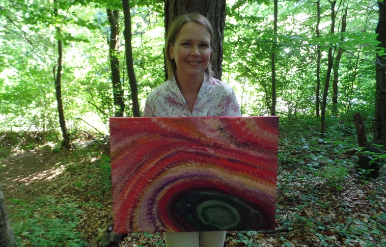 Tudatosan nincs címe Sziray Ágnes képeinek, hogy ne befolyásolják a befogadót a szabad gondolkodásban.