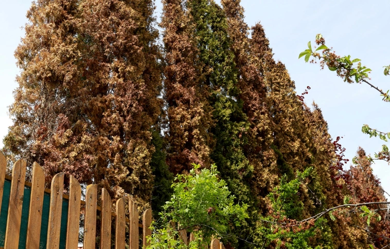 Tujavész van, száradnak ki a fák