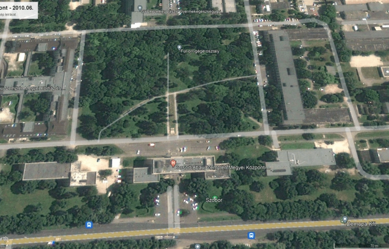 Műholdfelvétel: a megyei kórház a „Csillagpont” előtt és után