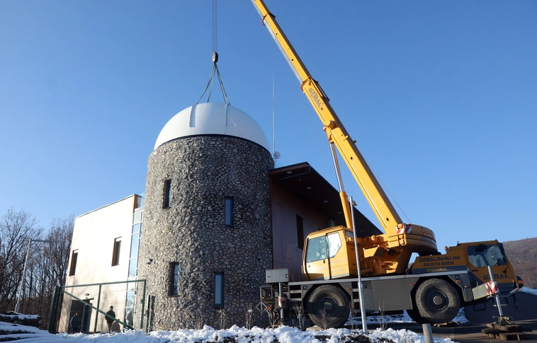 A Bükki Nemzeti Park Igazgatóság legújabb látogatóközpontja, a Bükki Csillagda építése elérkezett a befejező fázisához. Az épület legemblematikusabb része, a világ legnagyobb sorozatban gyártott 6,7 méter átmérőjű csillagászati kupolája szerdán a csillagvizsgáló tetejére került.