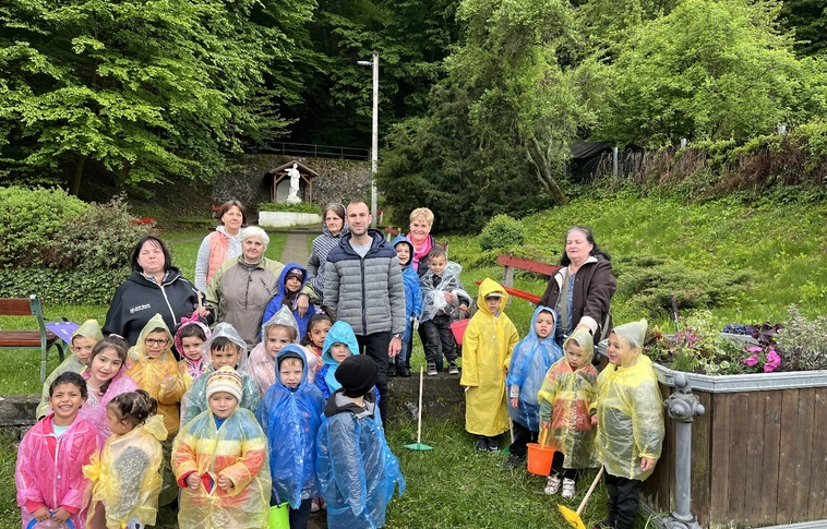 Tavaszi virágültetésen vettek részt a perecesi óvodások a Vilma-forrásnál a Föld Világnapján, ahová a választókerület önkormányzati képviselője, Bazin Levente szállította a virágokat és navigálta a gyerekeket az ültetés folyamatában.