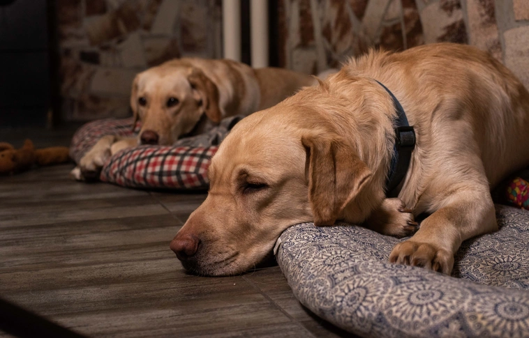 Így pihennek kiképzőikkel a vakvezetőnek tanuló kutyusok