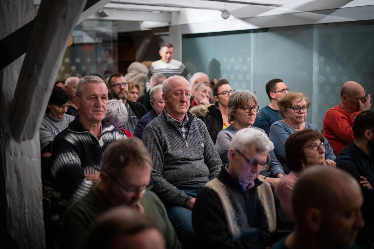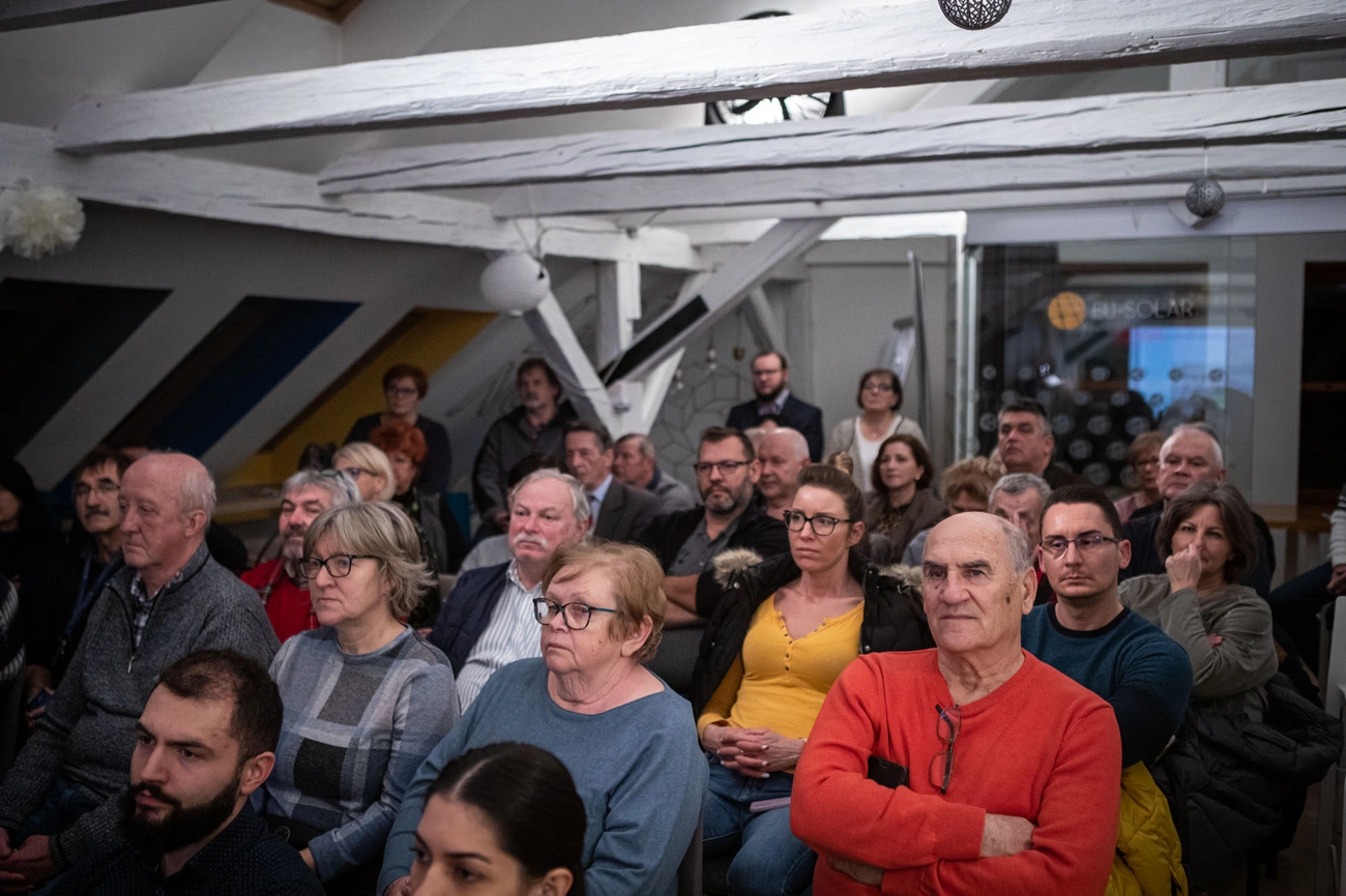 A Borsod24 portál által szervezett, bő egyórás előadásra - amit a Miskolc Televízió rögzített, a felvétel a Youtube-ra is felkerült - előzetesen több mint hatvanan regisztráltak, nagyjából ennyien lehettünk a Grabovsky irodájában. Az érdeklődők között helyi politikusokat, közügyekben felszólaló civileket és cégvezetőket is találtunk - mások mellett nagy figyelemmel kísérte az előadást Korózs András, a MIHŐ ügyvezető igazgatója is.