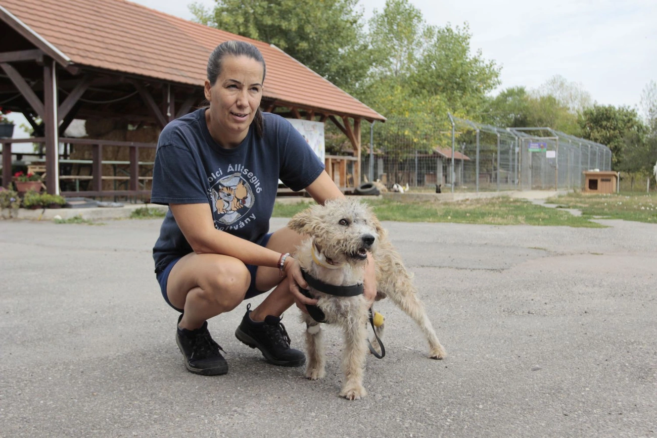 Horváth Rita a menhely egyik védencével; Fotók: Parai Roland