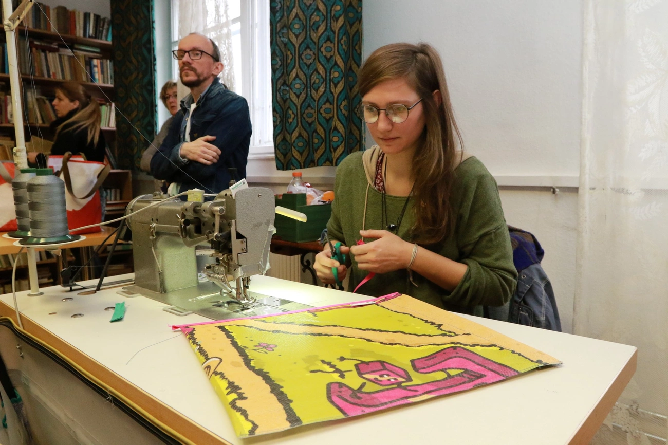 A workshop a résztvevők számára úgy nyújtotta az alkotás örömét, hogy ahhoz semmiféle előzetes gyakorlatra, tudásra vagy kézügyességre nem volt szükség. Elegendőnek bizonyult, ha valaki bánni tudott az ollóval. A táska kivágása és összerendezése kizárólag a jelentkezők hatásköre volt. A fővárosból érkező animátorok ezt követően véglegesítették a szabásminták nyomán megkezdett és megálmodott koncepciókat. Ezalatt a társalkotó vendégek megtekinthették a cég telephelyét, mígnem átvehették környezettudatosan szabott kiegészítőjüket. A vízálló használati tárgyak demonstratív erejükön túltekintve merőben praktikusak is, így egy késő őszi ködszitálásnál vagy egy majdani strandolásnál is bőven elkélhetnek. A foglalkozások pénteken folytatódnak.