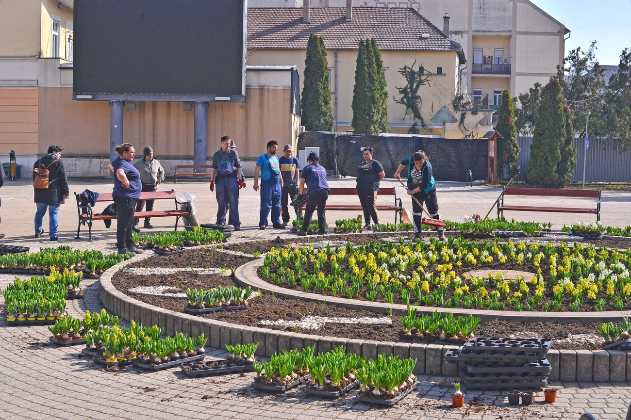 - Gyakorlatilag a város több pontján a virágágyások előkészítése zajlik. Most kiemelten azokat a helyszíneket vesszük előre, amelyek a március 15-ei ünnep alkalmából rendezvény helyszínek lesznek. De szépen sorra fog következni a város minden olyan virágágyása és minden területe, ahol egyébként évek óta kialakított virágágyások vannak. Idén újdonság, hogy nem csak egynyári virágokat ültetünk, hanem évelőket is. Ez is növeli a költséghatékonyságot – avatott be az ügyvezető igazgató.