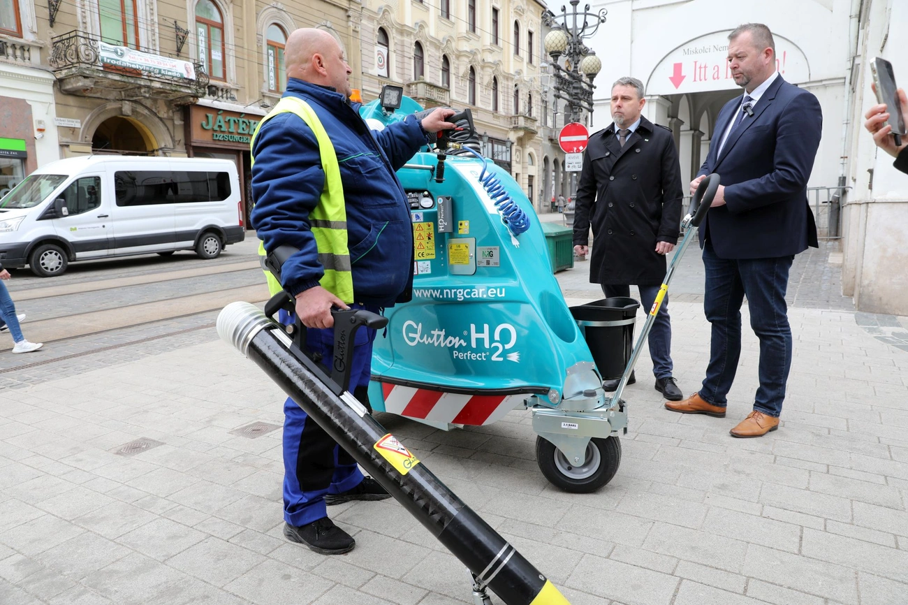 - Ez a gép egy elektromos szemétfelszívó, amellyel egyedülálló és hatékony tisztítást végezhet a városi környezetben a Miskolci Városgazda. Elsősorban az eldobott műanyag, papír vagy egyéb más hulladékok felszívására szolgál, nagy teljesítménnyel. Ez a fejlesztés egy fontos állomás a Városgazda működésében, amely nagyban segíti a takarítási munkát. A géppel gyakorlatilag egy ember is el tudja végezni azt a munkát, amit korábban esetleg ketten, hárman tudtak megcsinálni. Tehát ez a gépesítés szempontjából is egy fontos lépés volt – fogalmazott az alpolgármester.
